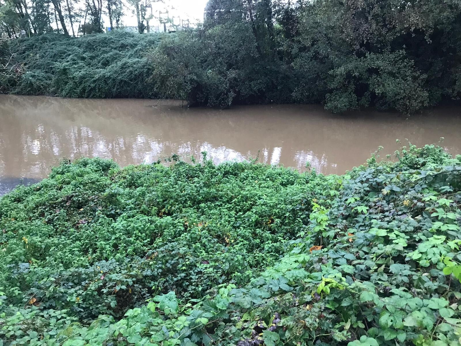 Figura 1 Immagini Scattate ore 8.00 del 31/10/2023 presso lo scarico in Terdoppio dell'impianto trattamento acque meteoriche CIM Spa